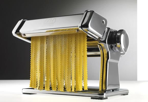 Das Zubehör Mafaldine ist eines der 13 Zubehörteile für frische Nudeln, die mit der Nudelmaschine Atlas 150 kompatibel sind. Sie können es mit der dazugehörigen Handkurbel von Hand oder mit dem Motor Pastadrive verwenden.