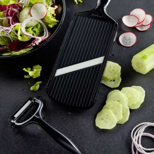 - das Gemüse gleitet über die Klinge für absolut präzise Schnitte, ohne daran zu zerren oder zu reißen