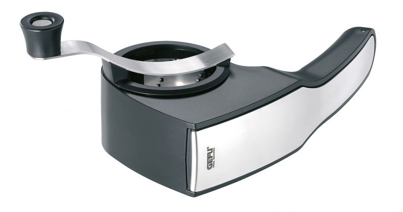 der verschließbare Aufbewahrungsbehälter, in den auch direkt hinein gerieben werden kann. Die ausgefeilte Technik der Trommelreibe ermöglicht ein nahezu volles Ausnutzen des Schneidgutes, bei dem die Hände nicht mit dem Schneidgut in Kontakt kommen und ein geruchsneutrales, sauberes Arbeiten garantiert ist. Und natürlich ist auch ein unkompliziertes Austauschen der Trommeln mit wenigen Handgriffen selbstverständlich. Das Geheimnis ist die