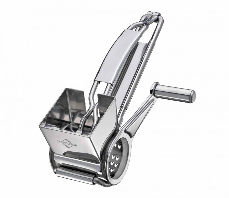 Gouda, Parmesan & Co. schmecken köstlich. Gerieben verfeinern sie Salate und Pasta, beim Überbacken bilden sie die begehrte goldbraune Kruste auf Pizza und Gratin. Mit der Käsereibe von KÜCHENPROFI haben Sie im Nu frisch geriebenen Hartkäse zur Hand. Füllen Sie einfach das Käsestück in das Reibefach und schließen Sie den Niederhalter. Durch Drehen der leichtgängigen Kurbel reiben Sie den Käse. Nach dem Essen darf das Gerät mit dem Geschirr in die Spülmaschine.