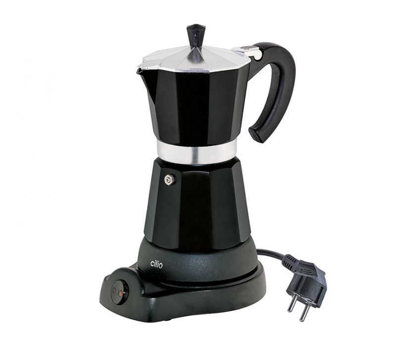 + ideal auf ReisenMit dem elektrischen Espressokocher CLASSICO von cilio genießen Sie Ihren Espresso wann und wo Sie möchten. Das Gerät hat eine integrierte Herdplatte und ist besonders praktisch auf Reisen und natürlich auch zu Hause. Nachdem Sie das Unterteil mit Wasser und den Trichter mit Espressopulver befüllt haben, schrauben Sie die Kanne fest zu. Setzen Sie den Espressokocher auf die Basisplatte und schalten Sie diese ein. Nach einigen Minuten steigt der Espressokaffee unter leisem Blubbern in den oberen Behälter. Wenn dieses Geräusch verstummt, ist Ihr Espresso fertig und schaltet automatisch in die integrierte Warmhaltefunktion. Sobald Sie die Kanne von der Basisplatte entfernen, schaltet sich das Gerät aus. Der Espressokocher ist für 6 Tassen geeignet.