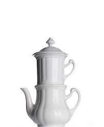 Der Deckel, der Seiher mit dem feinen Doppelsieb und die Kanne sind in zeitloser Form aus hochwertigem Hartporzellan gefertigt.