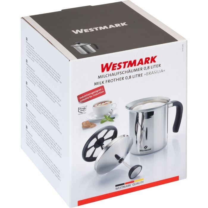 Latte Macchiato, Milchkaffee und Cappuccino ganz wie im Lieblings-Café - Mit dem mechanischen Milchaufschäumer von Westmark schäumen Sie in kürzester Zeit leckeren und festen Milchschaum für Ihre Kaffeespezialitäten auf. Dazu wird der Hebel einfach auf- und ab bewegt, bis der Milchschaum die gewünschte Festigkeit erhält. Soll der Milchschaum mit warmer Milch hergestellt werden, so kann diese direkt in dem Gefäß ohne Deckel erwärmt werden. Sobald die Milch die gewünschte Temperatur erreicht hat, wird der Milchaufschäumer mithilfe des hitzeisolierten Griffs sicher vom Herd genommen und aufgeschäumt. Die ausgeformte Ausgießlippe ermöglicht sauberes Einschenken.