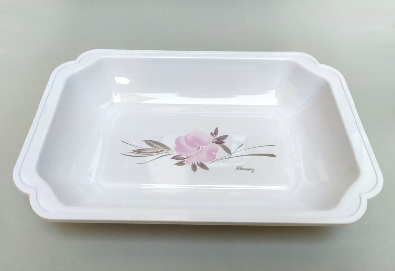 Rechteckige Kunststoffschale mit Blumenmuster in rosa/grau