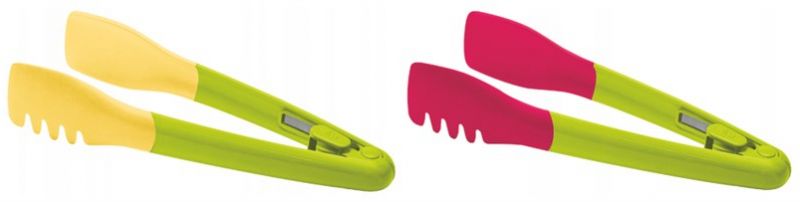 Farbenfrohe Salatzange aus Melamin-Kunststoff in grün-gelb. Dank Feststellmechnismus lässt sich die Zange platzsparend aufbewahren und leistet auch als Spaghettizange oder Servierzange gute Dienste.