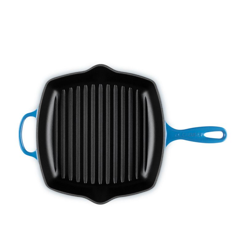 Die quadratische Grillpfanne aus der Serie SIGNATURE zeichnet sich durch einen ergonomisch geformten Griff sowie einen großen Gegengriff aus. Beide sind aus Gusseisen, weshalb die Grillpfanne für den Einsatz im Backofen ideal geeignet ist. Außerdem sorgen sie für einen einfachen und sicheren Transport, selbst mit dicken Ofenhandschuhen. Die Grillrillen halten das Fett wirkungsvoll zurück und sorgen ganz nebenbei auch noch für authentische Grillstreifen. Ein weiteres praktisches Detail sind die beiden Ausgießnasen. Die Pfanne ist in vielen strahlenden Farben verfügbar und macht sich so auch gut auf dem Tisch.
