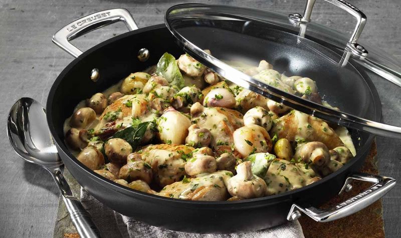 Le Creuset bietet mit dieser neuwertigen Aluminium-Antihaft-Serie ein vielfältiges Sortiment, aus dem jeder die passende Pfanne oder den geeigneten Topf findet. Der eloxierte und beschichtete Aluminium-Pfannenkörper gepaart mit einem ansprechenden Design ergeben eine ideale Kombination für das tägliche Kochen.