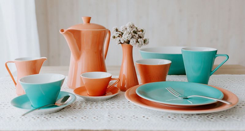 Stellen Sie sich aus den sechs schönen Pastelltönen ihr farbenfrohes Service im Retro-Stil zusammen!