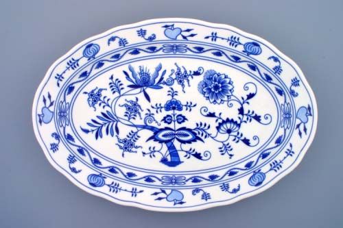 Große ovale Servierplatte aus tschechischem Porzellan mit Karlsbader Zwiebelmuster.