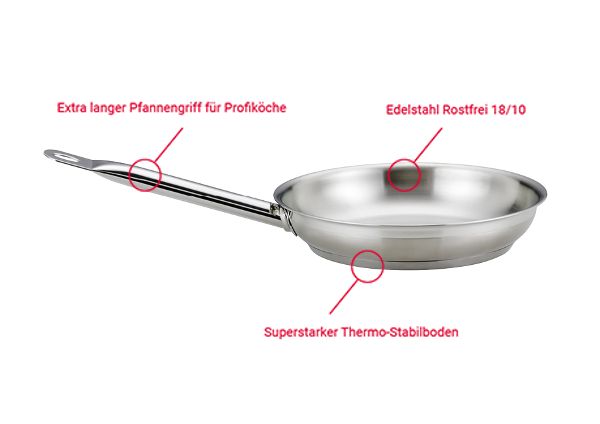 Der superstarke Thermo-Stabilboden ist auf allen Herdarten einsetzbar, leitet die Wärme blitzschnell und speichert sie nachhaltig. Dadurch ist eine kurze Anbratzeit und eine hohe Energieausnutzung garantiert. Der extra lange Pfannengriff, ebenfalls aus Edelstahl, ermöglicht eine leichte Handhabung.