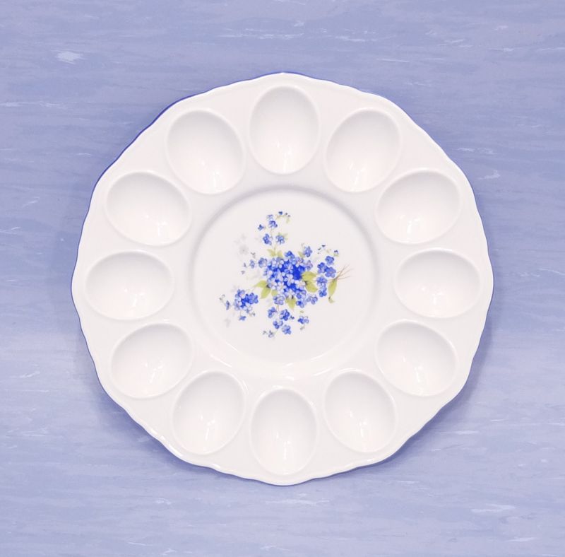 Porzellanteller für 12 Eierhälften zum hübschen Servieren von gefüllten Eiern oder Ostereiern auf dem Buffet, zum Frühstück oder auf der Ostertafel.