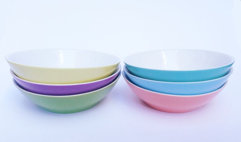 Stellen Sie sich aus den sechs schönen Pastelltönen ihr farbenfrohes Service im Retro-Stil zusammen!