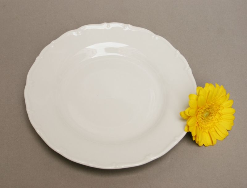 Wir führen Fleischteller, Suppenteller und Dessertteller, Suppenterrine und Suppenschalen, Schüsseln, Schalen und Platten in verschiedenen Formen und Größen, Kaffeetassen und Unterteller, Zuckerdosen, Milchgießer und vieles mehr.