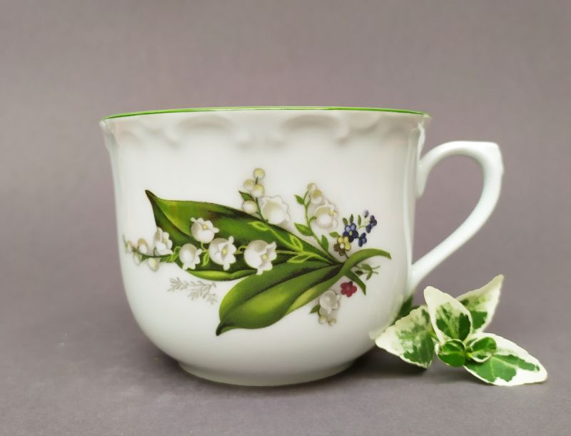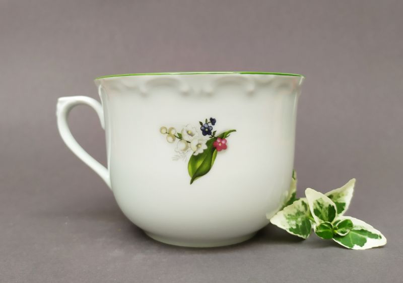 Aus der eleganten Teetasse aus feinem Bohemia Porzellan mit Maiglöckchen schmeckt Ihr Nachmittagstee besonders gut :) Die feinen Ornamente unter dem Rand verleihen der Tasse einen nostalgischen Touch und passen wunderbar zum nostalgischen Blumendekor. Natürlich macht sie sich auch gut auf jeder Kaffeetafel.