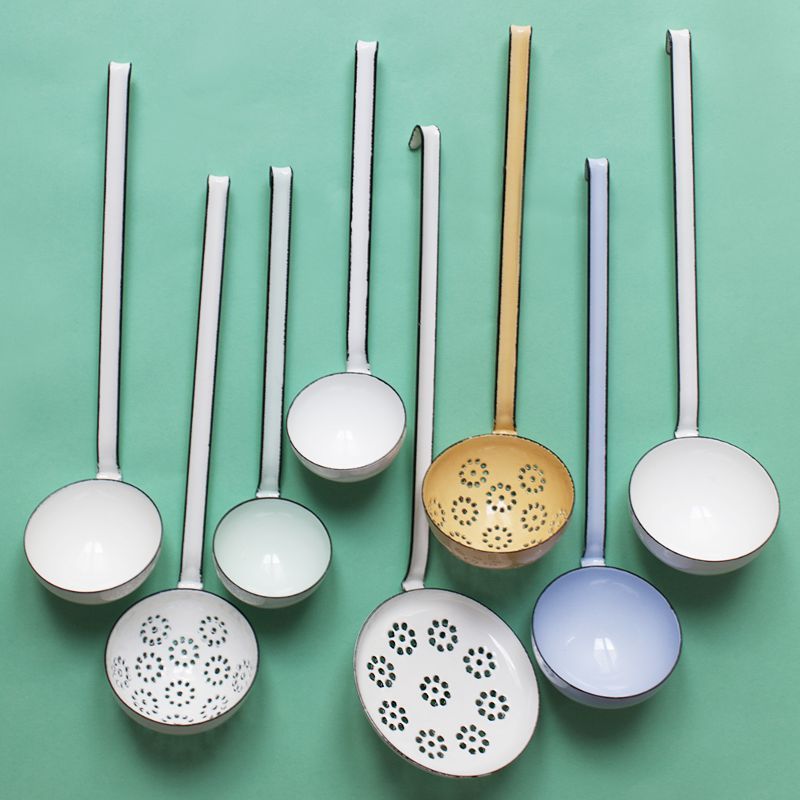Der formschöne Schaumlöffel aus Emaille ist ein nützlicher Helfer in der Küche. Mit dem Haken am Ende des Stiels läßt er sich einfach und platzsparend aufhängen - z.B. an der passenden Löffelblechleiste. Die Emaille in pastelligem nilgrün ist robust, kratzfest und leicht zu reinigen.