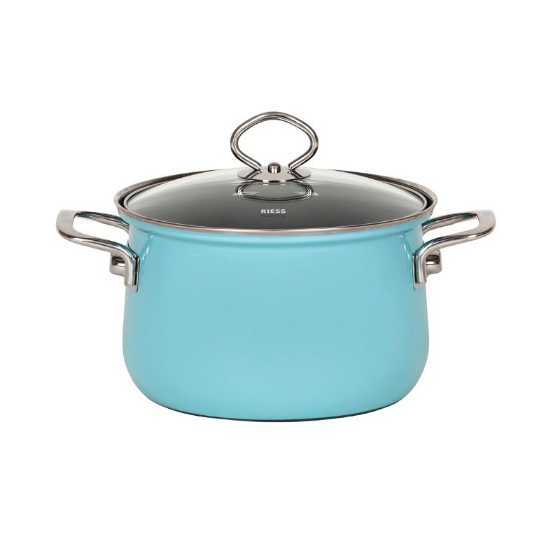 Natürlich mit Deckel aus Glas, wie bei allen Nouvelle Produkten. Emaillegeschirr mit starkem Boden und rostfreiem Schüttrand. Garantiert schnelle Erwärmung des Kochgutes. Universelle Kochstellen-Eignung: Induktion, Glaskeramik, Elektroherd, Gasherd, Bratrohr. Einfache Reinigung.