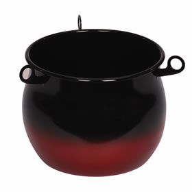 Unser schwarz-roter Lagerfeuerkessel hat eine gebauchte Form und fasst gewaltige 10 Liter und hat einen Durchmesser von 26 cm. An den drei Ösen am Topfrand kann der Lagerfeuerkessel mit einer Kette an einem Dreifuss befestigt werden, sodass der Topf über dem Lagerfeuer schwebt und die optimale Hitzezufuhr des Feuers erhält. Die Lagerfeuerromantik in Verbindung mit einem heißen Gericht oder Getränk ist mit diesem Kessel perfekt. Die Ösen können auch zum Aufhängen der Schalen mit einem Haken dienen. Beide Produkte sind als Zubehör zum Kessel erhältlich, ebenso auch ein Deckel und Suppenschöpfer.