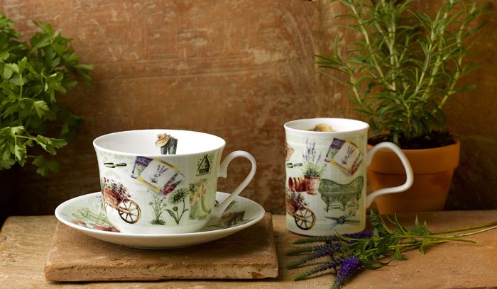 Roy Kirkham Kaffeebecher "In the Garden" mit Gartenmotiven - ein schönes Geschenk für Hobbygärtner und Teefreunde. Jedes Set enthält 2 verschiedene Motive zum Sammeln.