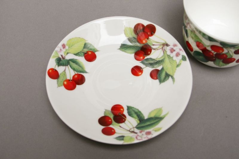 Roy Kirkham Jumbotasse mit Untertasse "Cherry" - mit leckeren Kirschen