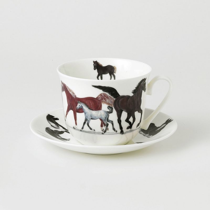 Roy Kirkham Jumbotasse mit Untertasse "Horses" - (nicht nur) für Pferdefreunde