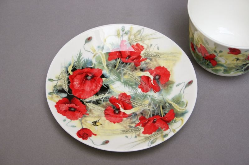 Roy Kirkham Jumbotasse mit Untertasse "Poppy" mit romantischen Mohnblumen, wie ein Sommerspaziergang durch die Felder...