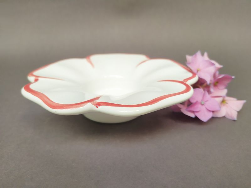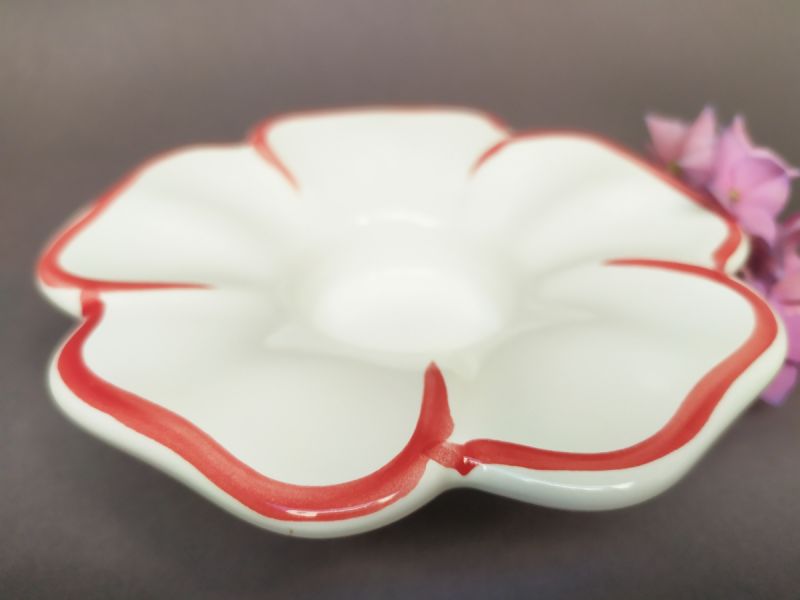 Gmundner Keramik Bordeauxroter Rand Blütenlichtpassend für Teelichter oder dickere Kerzen