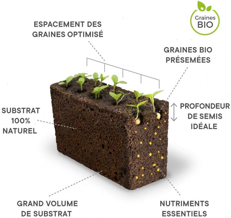 Jeder Parameter wird optimiert: der Abstand der Samen, deren Tiefe, die Wahl der Pflanzenart, die Substratzusammensetzung… Die Herstellung ist an jede Pflanze spezifisch angepasst, um eine reichliche und schmackhafte Ernte zu garantieren.